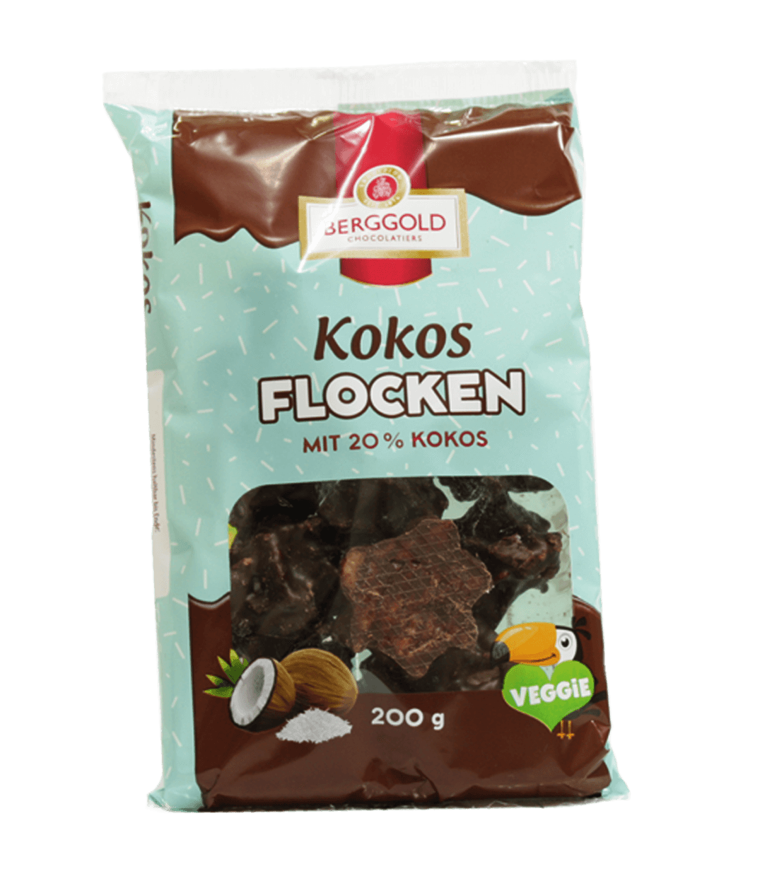 Kokosflocken mit Zartbitterschokoladenüberzug BERGGOLD Kokosflocken: Zurücklehnen und genießen. Hol dir karibisches Flair ins Haus mit unserer köstlichen Konfekt-Kreation – exotisch-saftige Kokosraspeln umhüllt von knackiger Zartbitterschokolade ergänzen sich harmonisch und lassen dich vom Urlaub träumen. Genuss pur das ganze Jahr über!