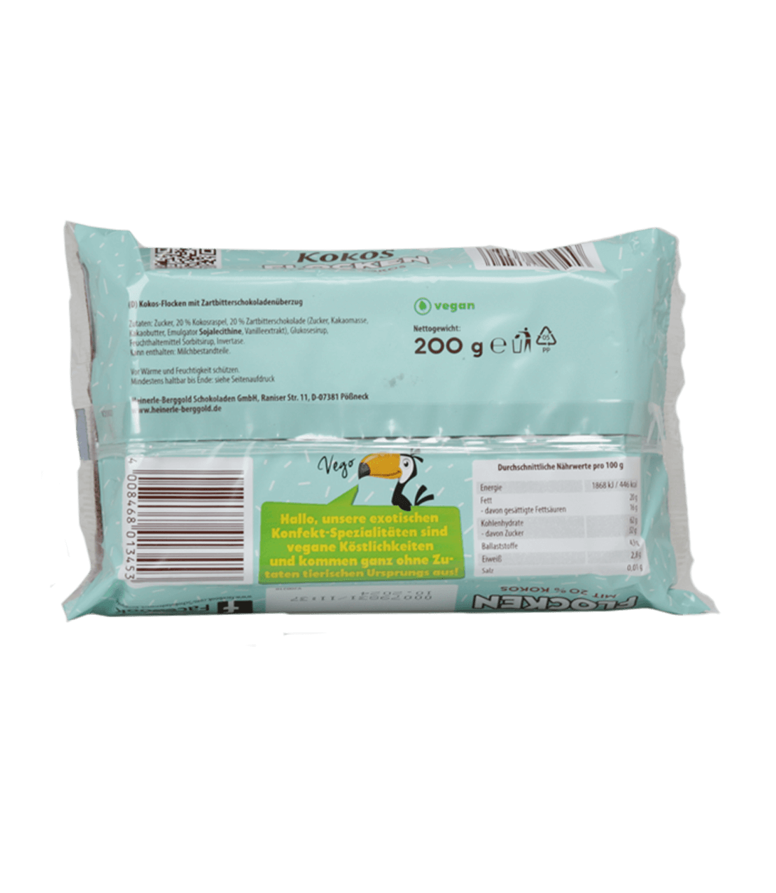 Kokosflocken mit Zartbitterschokoladenüberzug BERGGOLD Kokosflocken: Zurücklehnen und genießen. Hol dir karibisches Flair ins Haus mit unserer köstlichen Konfekt-Kreation – exotisch-saftige Kokosraspeln umhüllt von knackiger Zartbitterschokolade ergänzen sich harmonisch und lassen dich vom Urlaub träumen. Genuss pur das ganze Jahr über!